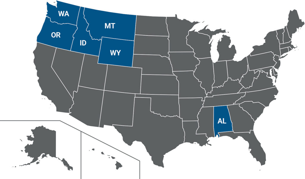 We provide services to the following states in blue: